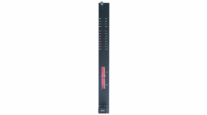 M35板卡提供靈活的交換網(wǎng)絡(luò),可以實(shí)現(xiàn)任意E1之間任意64k信道的無阻塞全交叉連接,具有對(duì)隨路信令(CAS)處理能力,可以通過線路提取同步時(shí)鐘、或設(shè)備內(nèi)部產(chǎn)生同步時(shí)鐘。